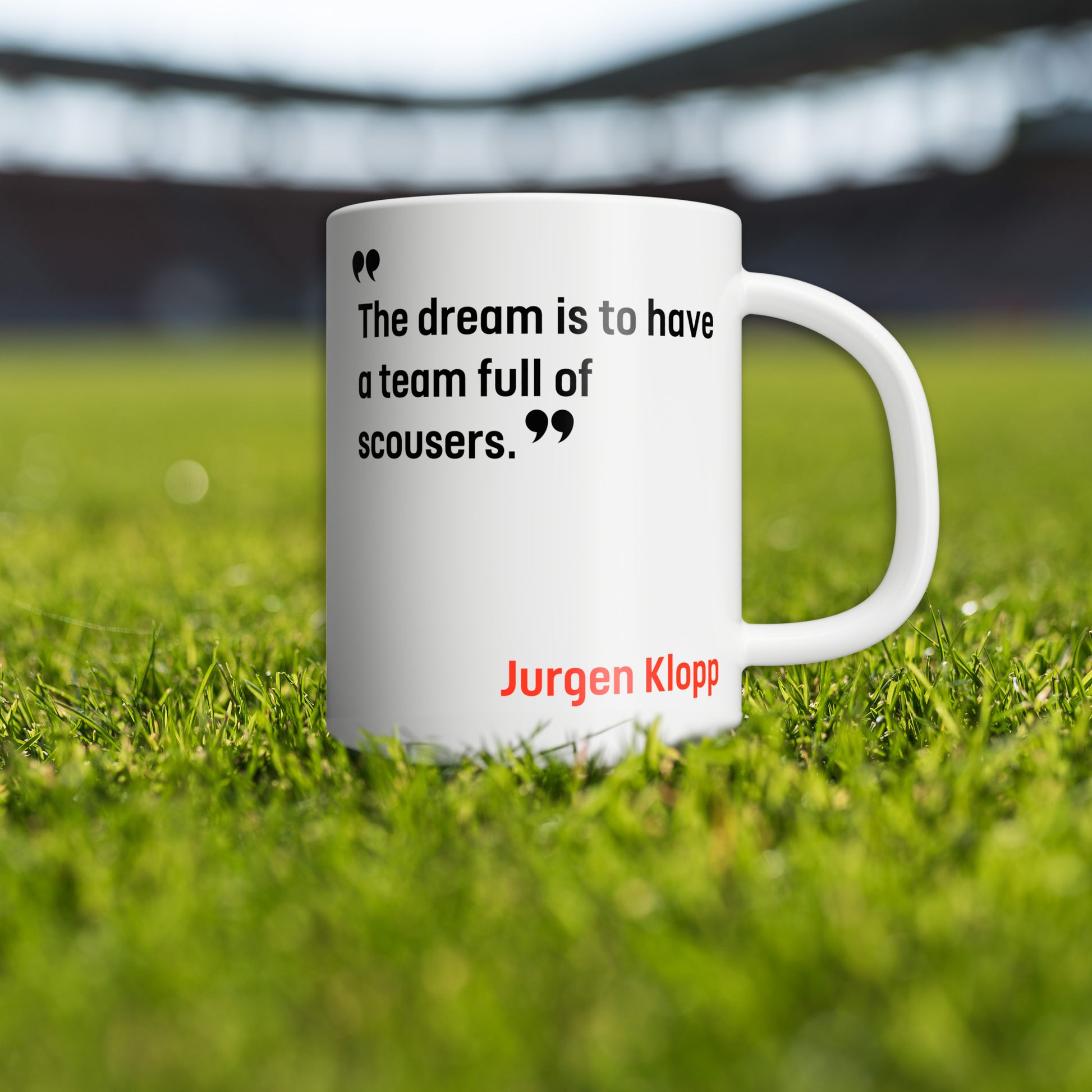 Introducing our exclusive Liverpool Football Club mug, featuring the iconic words of Juergen Klopp: "Team of Scousers." This limited-edition release celebrates the unity and passion that defines Liverpool FC.